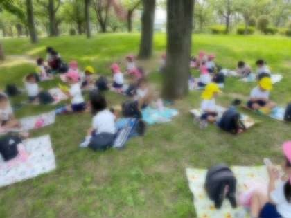 たくさん遊んだので、お腹も空いて、戸外で食べるおにぎりも美味しくいただきました!