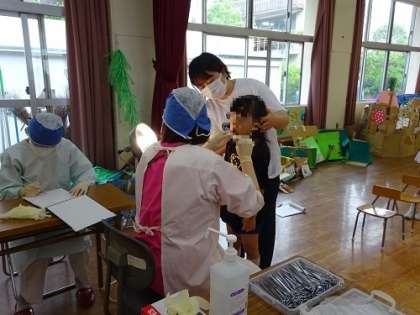 本日は歯科健診がありました。幼稚園の園医(歯科医)がきてくださり、歯の健康を診ていただきました。全クラス上手に「あ〜ん」と口を開けて診てもらっていました。また、歯科健診を待っているときも、静かに待っています。4月から入園した子どもたちも、話を聞いたり、順番を守ったり、とても成長した姿に頼もしさを感じました。