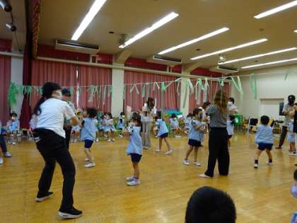 本日は誕生会でした。幼稚園では、毎月子どもたちの誕生をお祝いしています。昨年はコロナの影響でクラス毎でしたが、今年度から年長児・年中少児に分けて実施しています。内容も保護者とのふれあい遊びをしたり、歌を歌ったり少しずつ元にもどりつつあります。もちろんマスク着用で換気を行った上で実施しています。子どもたちは自分の誕生をお祝いしてもらう、とても貴重な、またいい緊張を経験する誕生会です。6月も楽しい誕生会でした!