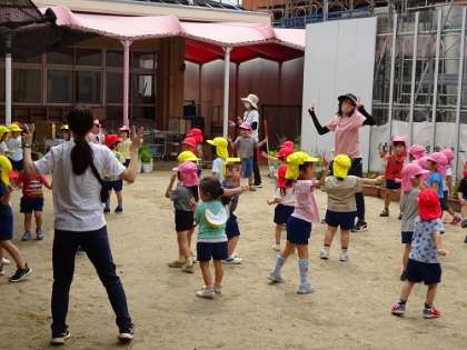 3歳児・4歳児の園庭様子 公開日 2022/06/16 更新日 2022/06/16 お知らせ 梅雨空の晴れ間を利用して子どもたちは園庭で遊んでいます。ダンスや体操、盆踊りなど体を動かす遊びを楽しんでいます。 いいね(0)