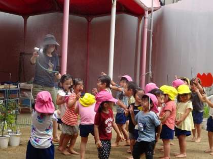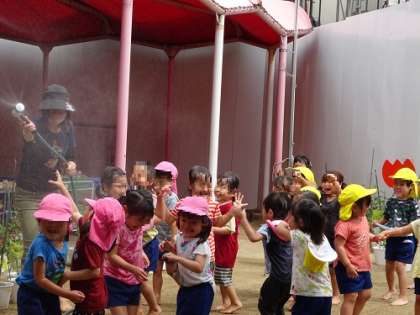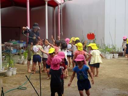(20日昨日)水遊び(4歳児) 公開日 2022/06/21 更新日 2022/06/21 お知らせ 昨日は蒸し暑く、園庭で水遊びをしていました。霧のシャワーをかけてもらい、プール遊びまでの水遊びです。表情を載せることができないのが残念!!「キャー」「もっと!!」と歓声を上げて楽しんでいました。 いいね(0)
