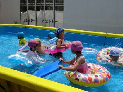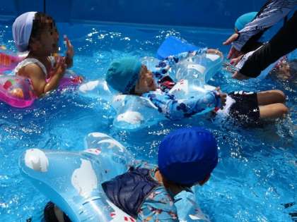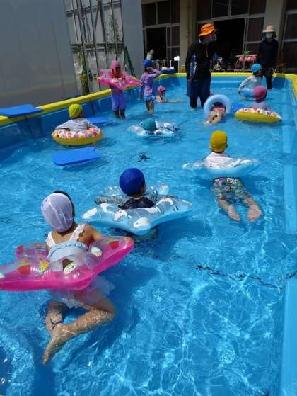 プール遊び(5歳児) 公開日 2022/06/23 更新日 2022/06/23 お知らせ 浮き輪で遊んだり、魚になったり…。プールから上がった子どもたちは「楽しかった!!」「また、入りたい!」と話してくれました。これからのプール遊びが楽しみですね! いいね(0)