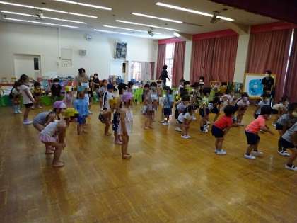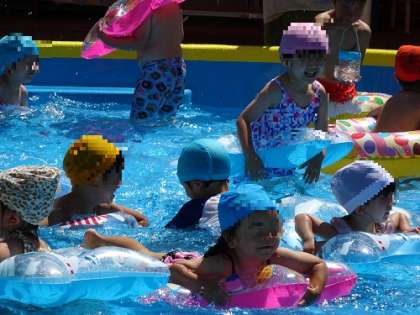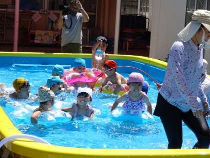全員で体操のダンスをして、プール遊びをします。気持ちよさそうです!!