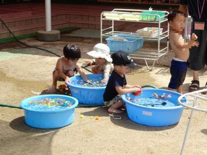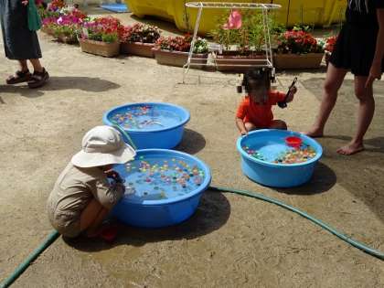 今日は、未就園児の子どもたちがたくさん遊びに来てくれました。スーパーボールを楽しむ子どもたちです。