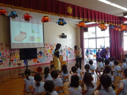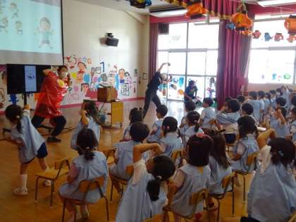 子どもたちが普段歌っている歌をお家の方に聞いていただいたり、怪人(ダラダラン)と元気マンが登場し、夏休みの約束を先生たちが劇にしたり、盛沢山の終業式でした。