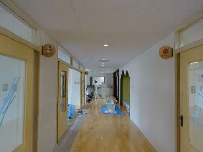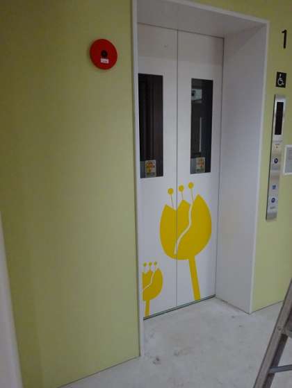 床やエレベーターの柄、各クラスの表示は担任の先生方が選びました!