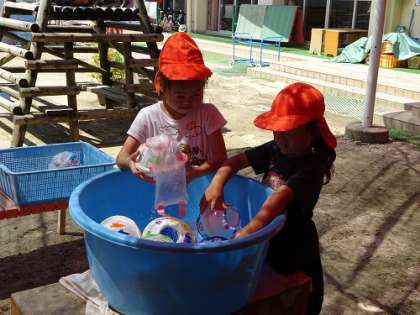 午前中、水遊びをして遊んでいます。