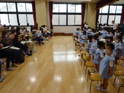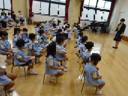園長先生のお話を聞いたり、とんぼの歌を歌ったりして始業式を行いました。