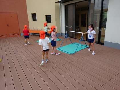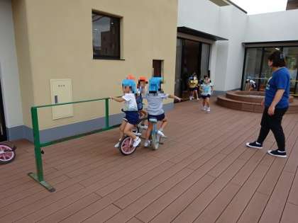 2階のテラスで一輪車など運動遊びも楽しんでいます!