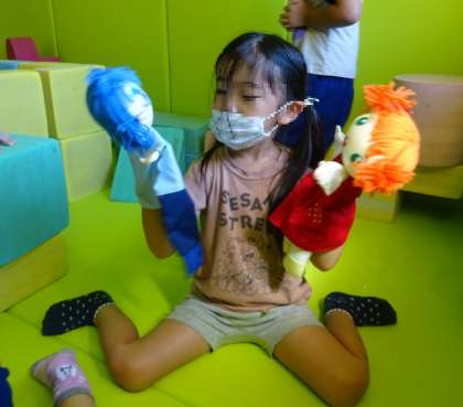 玄関にあるDENに新しい友達が仲間入り。早速子どもたちは手に取って遊んでいました!何を話しているのかな?