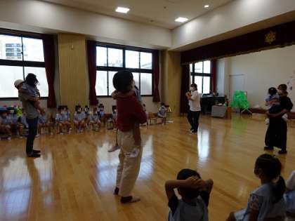 5歳児の誕生会 公開日 2022/09/07 更新日 2022/09/07 お知らせ 5歳児の誕生会もとても立派です。 自己紹介も落ち着いてできるようになります。 お家の方とふれあいしたり、また、5歳児は縄跳びをつかったピーターパンをイメージして遊んでいました。 司会の先生のピーターパンへの世界に引き込まれる子どもたちです。 いいね(0)