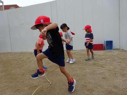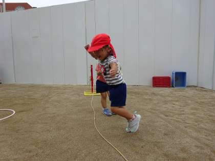 何度も縄を跳び越えては、「跳べた〜!」と嬉しそうな表情を浮かべていました!