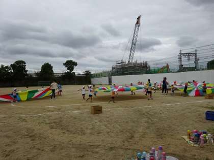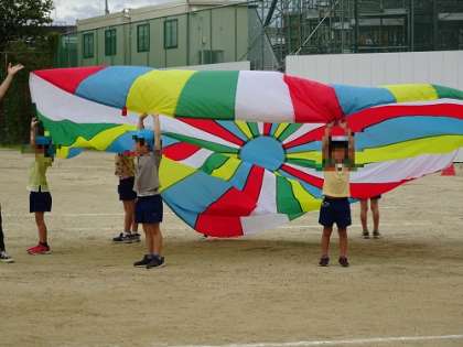 楽しいパラバルーンの遊びがみんな大好きです。