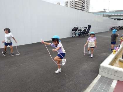 いい場所みつけたよ(5歳児) 公開日 2022/09/09 更新日 2022/09/09 お知らせ 今日は、新しい場所で一輪車、縄跳びの遊びを楽しみました。 「ここ持ったらやりやすいよ!」と柵をつたいながら一輪車に挑戦。 園庭が狭いですが、体を動かす場と時間を確保できるように、子どもたちと一緒にいろいろな場所を探しながら遊んでいます。 いいね(0)