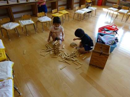 カプラは、1:3:15の大きさのもので成り立っています。木片を積み重ねるだけで、どんなものも作れる「魔法の板」と呼ばれています。作っては壊し、作っては壊ししながら、高く積んだり、横に積んだり楽しんでいます。