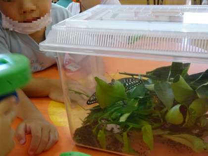 保育室でチョウは羽化していました。