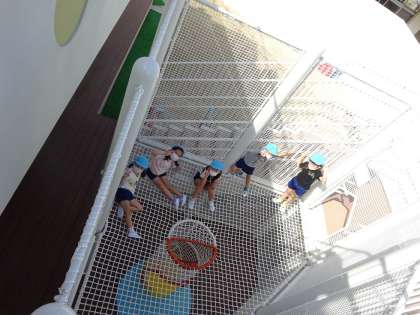 子どもたちの大好きな網の遊び場所。朝は日陰になっていて気持ち良いですね。