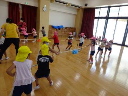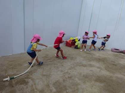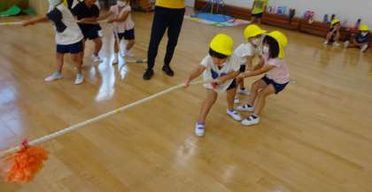 力いっぱい綱引き(4歳児) 公開日 2022/09/13 更新日 2022/09/13 お知らせ 今日は3人で力を合わせて綱引き遊び! 「もっと引っ張って!」と声をかけあっていました。 楽しかったようで、外遊びの時にも楽しんでいましたよ。 いいね(0)