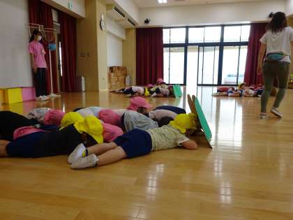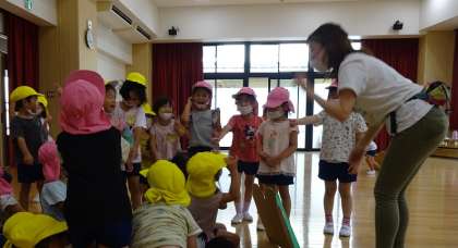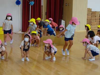 オタマジャクシの体操をして、カエルに育った子どもたちはそのあと元気に飛び跳ねていました。
