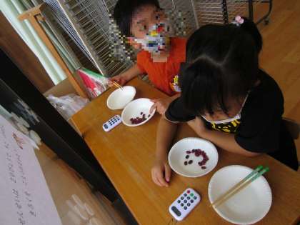 幼稚園に戻りお弁当を食べ終わったあと、保育室で元気に体操をしたり、お箸チャレンジをしたりして遊びました。