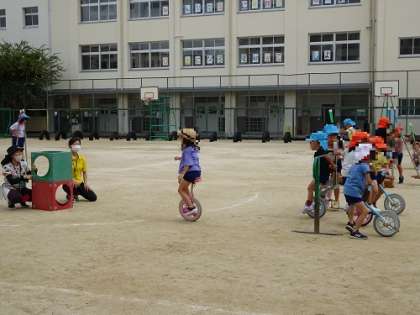 予行7(5歳児) 公開日 2022/09/20 更新日 2022/09/20 お知らせ 5歳児は日頃遊んできたものを披露するチャレンジをします。 縄跳び・竹馬・一輪車などなど。 自分で選んだ遊びに、目標を決めて取り組み、それを披露します。 当日たくさんの拍手をお願いします! いいね(0)