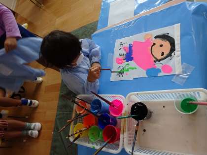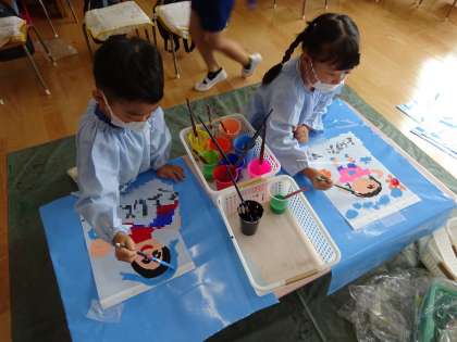 運動会の時に飾る万国旗に絵をかきました。