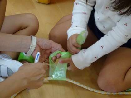 手先を動かす遊びを取り入れ、自然とできるようにしています。