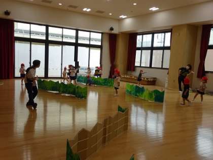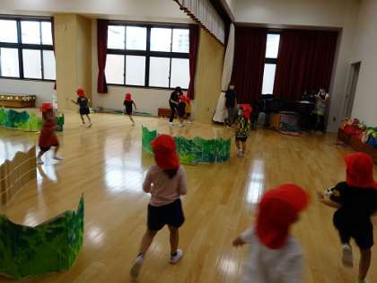 遊戯室でリズム表現をしていました。