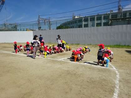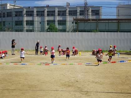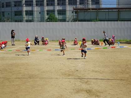 グラウンド(3歳児) 公開日 2022/09/26 更新日 2022/09/26 お知らせ グラウンドでかけっこをしていました。自分の場所(色)に自分で並びに行きます。そして、「よーいピ!」の笛で走るようになっています! 子どもたちは笑顔でかけっこしていました! いいね(0)