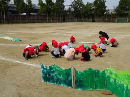 3歳児(リズム) 公開日 2022/09/27 更新日 2022/09/27 お知らせ 写真上…みんなタマゴになっているときです。ここから始まります。アオムシの誕生です! 写真中央…みんなでリンゴを食べています。大きくなるために、たくさん食べていますが、それぞれの表現をしていますので、当日もよーーく見てください! 写真下…みんなでダンスです。3歳もみんなと合わせて踊る楽しさを味わいます。 広い場に広がって活動できるようになっています。今から運動会が楽しみです! いいね(0)