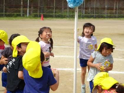 ダンスをしたり、玉入れしたり、曲に合わせて楽しみます。
