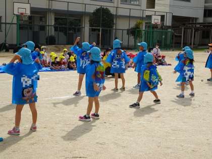 運動会予行(伝法小学校で) 公開日 2022/09/29 更新日 2022/09/29 お知らせ 5歳児のソーランです。 手書きの法被を着て踊りました。 動きも気持ちもそろっていて、とてもかっこいいです。 当日もお楽しみに! いいね(0)