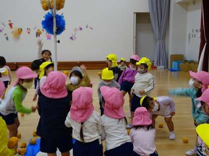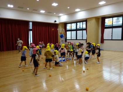 遊戯室で玉入れをしています。