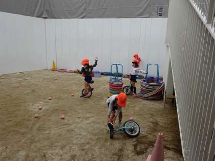 運動会のチャレンジでお家の方に見てもらって子どもたち。