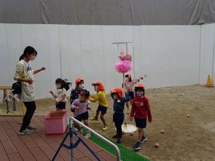 4歳児のダンシング玉入れを今日は5歳児が楽しんでいます。