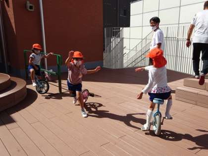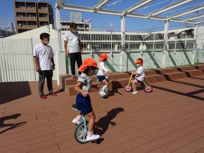子ども青少年局の方々が、子どもたちが実際に生活している様子を見に来てくださっています。