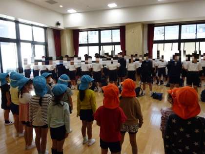 此花中学校3年生との交流 公開日 2022/10/14 更新日 2022/10/14 お知らせ 今日は、此花中学校3年生と5歳児が交流しました。 3年1組・2組が来てくださり、園庭で遊んだり、歌を聴かせていただいたり、とても楽しい交流でした。 中学校のお兄さん、お姉さんは本当に優しく、また健気に園児に話しかけてくださる姿がほほえましかったです。姿勢をかがめて話しかける姿がまさに、幼稚園の先生です! まず自己紹介からスタートしました。 いいね(0)