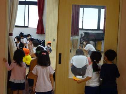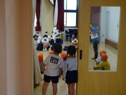 今日は此花中学校のお兄さん、お姉さんが幼稚園に来ました。「大きいお兄ちゃん、お姉ちゃんだね」と、興味津々です!今日は年長児が交流をしました。その様子を4歳児の子どもたちが見つめています。月曜日は4歳児が交流をします。楽しみですね!