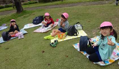 いっぱい力をつかって掘った後のおにぎりはとってもおいしかったようです♪食べた後は、芝生の上で転がったり、遊具で遊んだりして楽しみました。