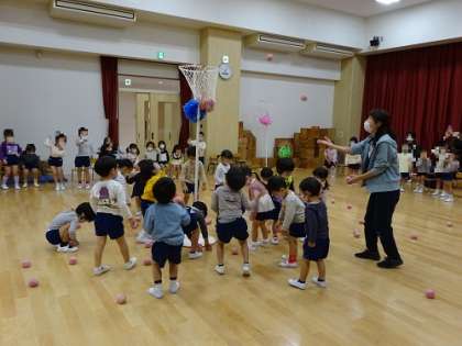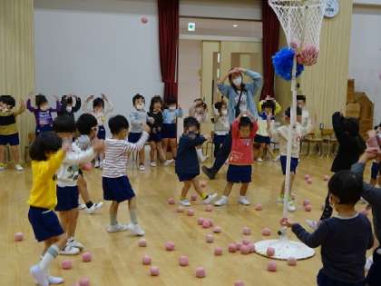 4歳児の玉入れの運動会の「ダンシング玉入れ」です。