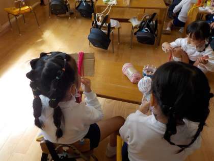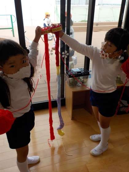 毛糸遊びが続いています(5歳児) 公開日 2022/10/24 更新日 2022/10/24 お知らせ 毛糸遊びがまだまだ続いています。 ぐるぐる巻いてぼんぼりをつくったり、中に綿をつめて、ぬいぐるみをつくったり、 友達と長さ比べをしながら根気よく頑張ったり、それぞれが自分なりのイメージをもって取り組んでいます。 いいね(0)