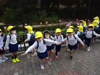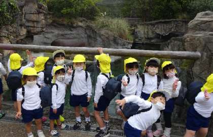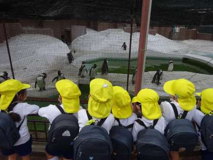 楽しみにしていた動物園。行きの電車の中から、「何の動物がいるかなぁ〜?」と想像を膨らませていました。フラミンゴの前では、仲良し遊びでしていた『フラミンゴずもう』のポーズをとって、フラミンゴになりきって遊んでいました。カバがご飯を食べているところやペンギンの立ち姿を見て、「すごいね!」「何食べてるのかな?」「可愛い〜!!」と感じたことを友達と伝えあって楽しい気持ちを共有していました。