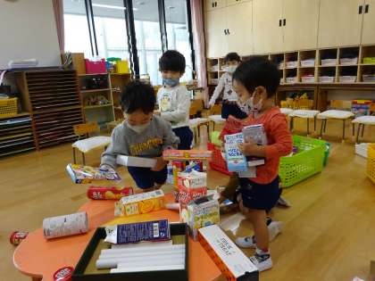 「どうやって遊ぼうか?」と聞くと、「高くする!」「中に入れてみる!」と