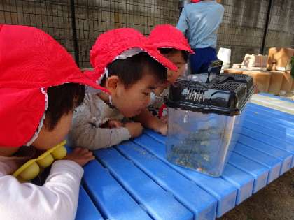飼育ケースに入れて、友達と一緒に見ながらお話していました。