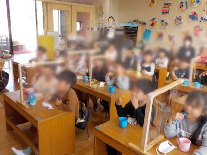 歯みがきの実践では、さすが年長さん、前の顎模型を見ながら上手に歯ブラシを当てて磨いていましたよ。
