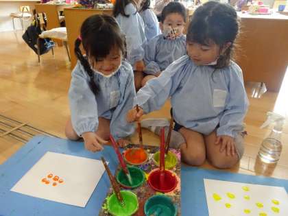 絵具でにじみ絵をして遊んだよ(ほし組)