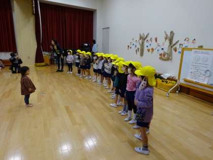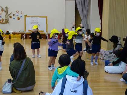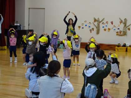 4歳児(ほし組)がうさちゃんクラブの子どもたちと一緒にダンスをしました。