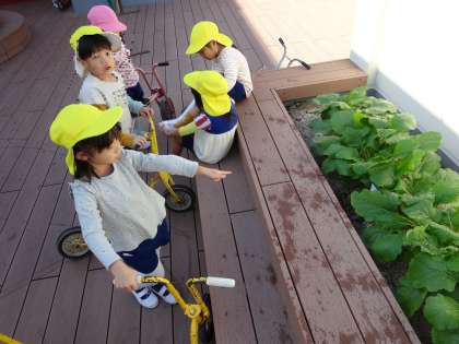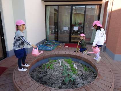 2階に上がると「うわ〜!野菜大きくなってる」「先生、お水あげていい??」と、野菜の生長に気付いたり、自分たちで育てたい気持ちが芽生えたりしています。