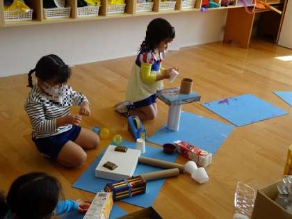 様々なイメージをして「〇〇作ってる!」「これがな、こうしてね」と自分の考えたことを次から次に話してくれる子どもたちです。