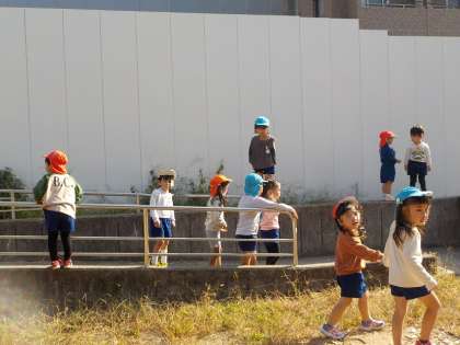 気持ちいい秋晴れの中、全園児でグラウンドへ行きました。